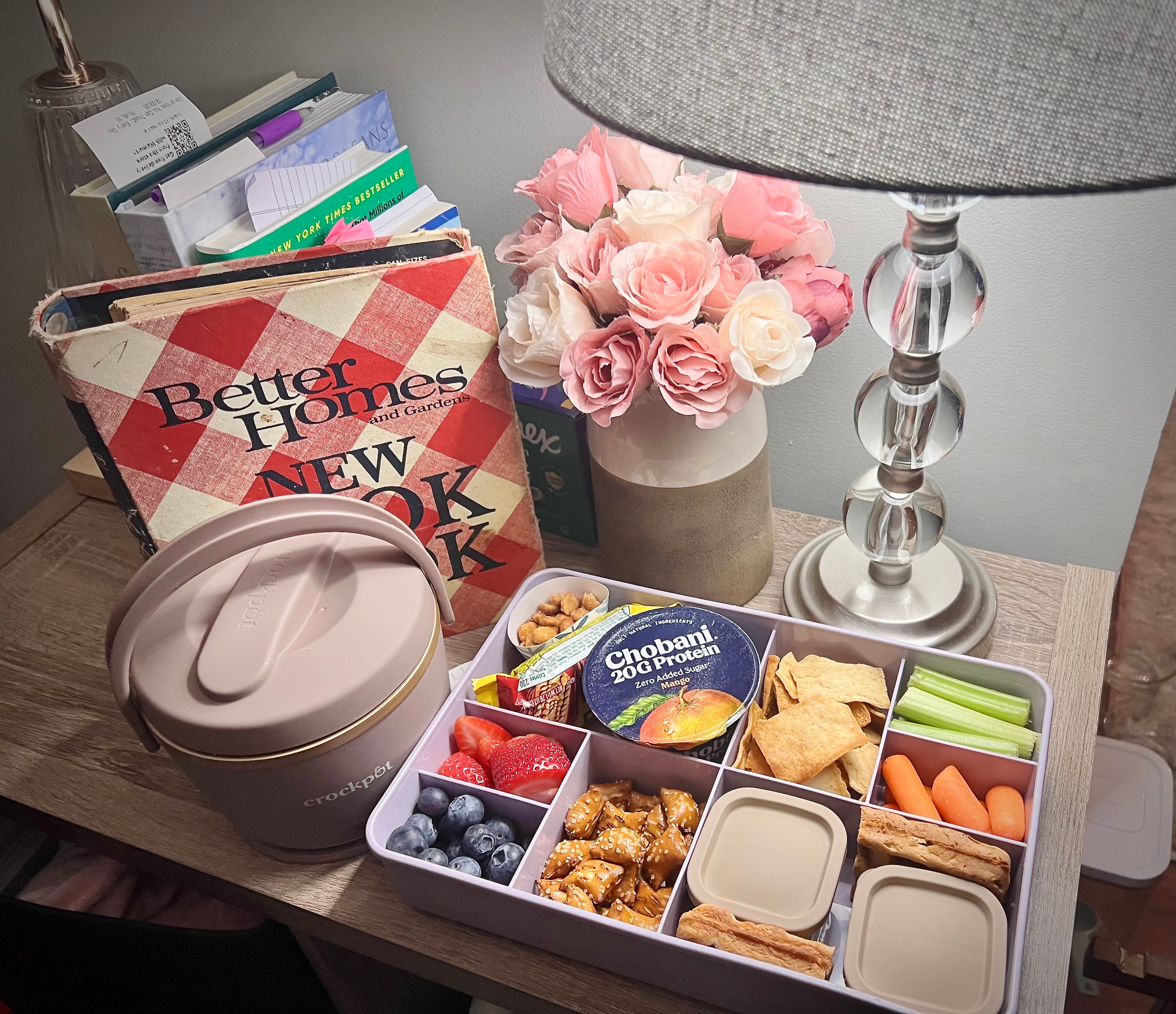 For the ride: Comfort Coffee Middle Roast. Tap Water with Wild Berry Hydrator.